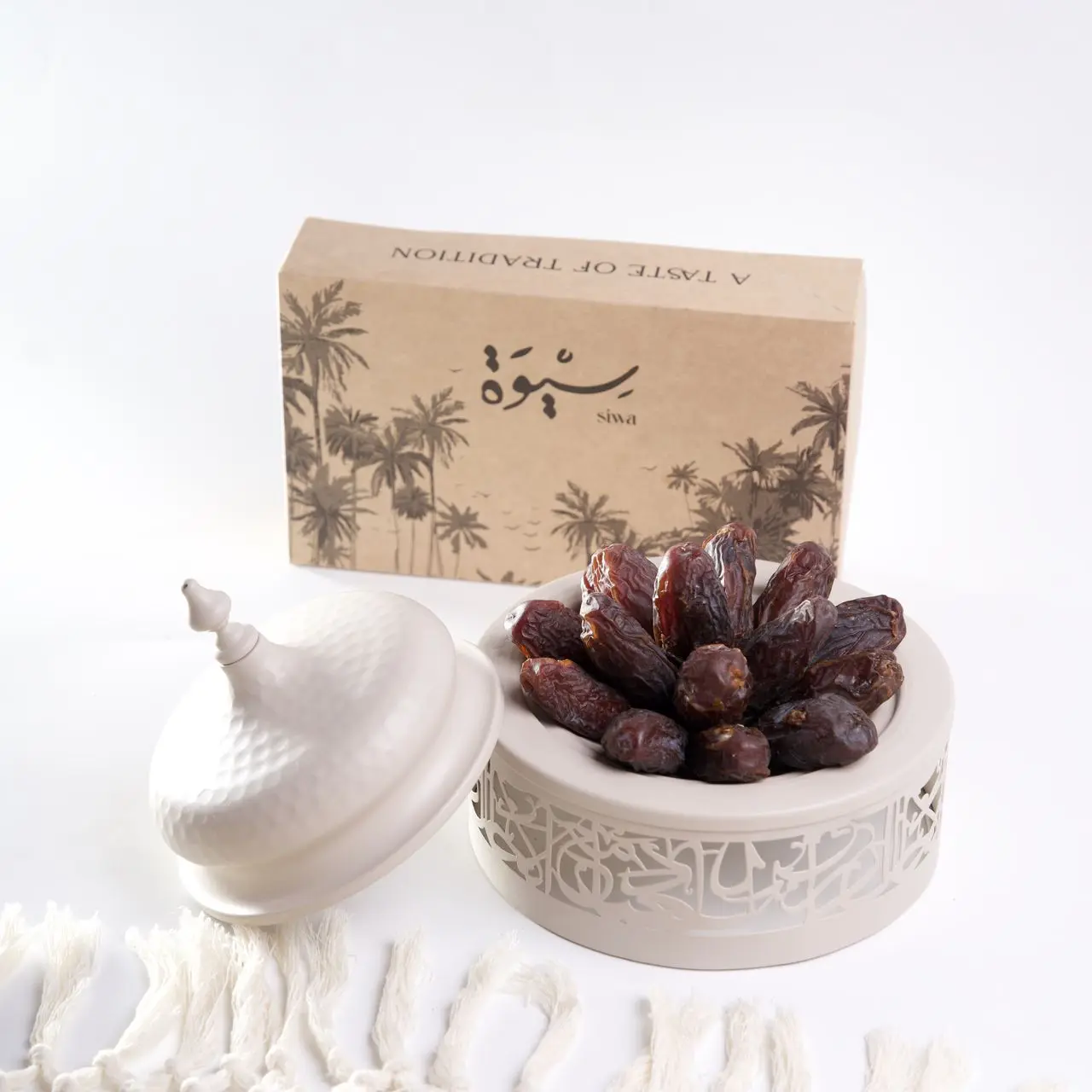في اصل التجربة مع سيوة يوجد تمر المجهول - كبير، غني، وحلو بشكل طبيعي. يتم اختيار تمورنا الفاخرة يدويًا من مزارعنا، وتصنيفها بعناية حسب الحجم والجودة، وتقديمها في عبوات أنيقة تبرز جمالها. مثالية كمصدر يومي للطاقة أو كهدية راقية، تلتقط هذه التمور أصفى تعبير عن حلاوة الطبيعة. بملمسها الناعم وطعمها الشبيه بالكراميل، هي حلوى خالدة لا تحتاج إلى أي إضافات.